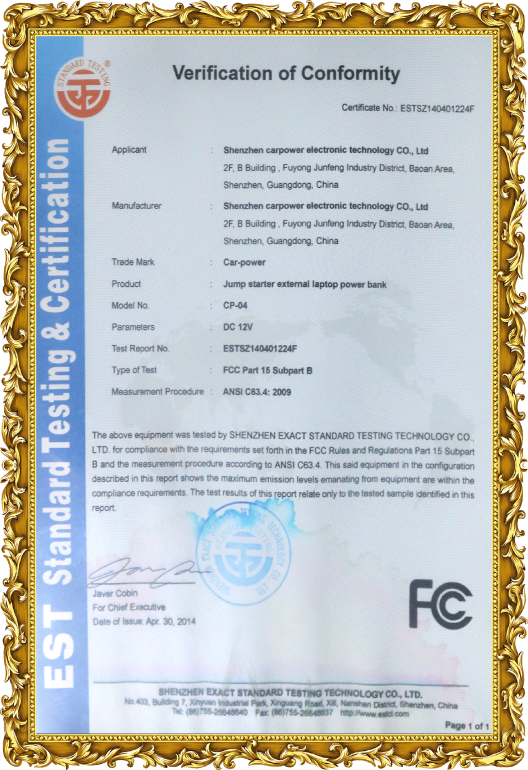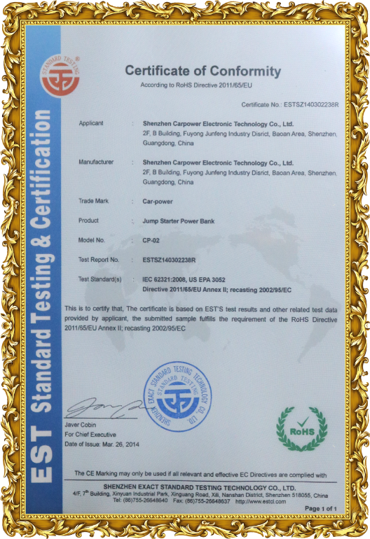 As for company quality management, Carpower has passed the ISO9001 International Quality System Certification. We are highly qualified & with all the necessary certifications, such as CE, ROHS, FCC, UN38.3, etc. Moreover,Carpower also approved by SGS.